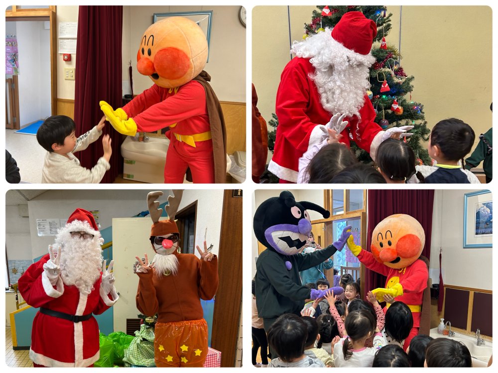 サンタさんやアンパンマン・バイキンマンも来てくれましたよ。