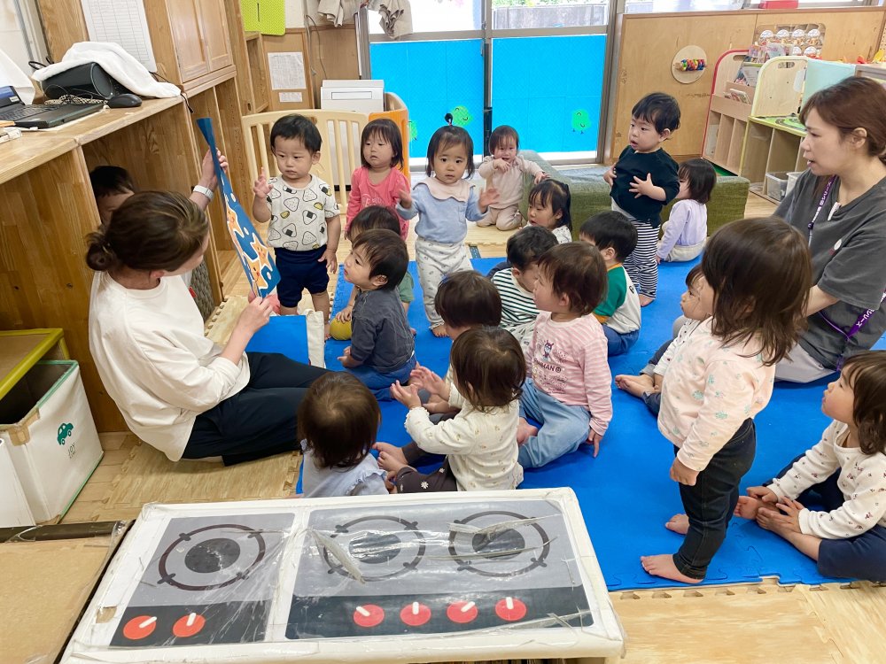 新しいお友だちとも手遊びやリズム体操、園庭遊びなど楽しい時間を過ごす中、